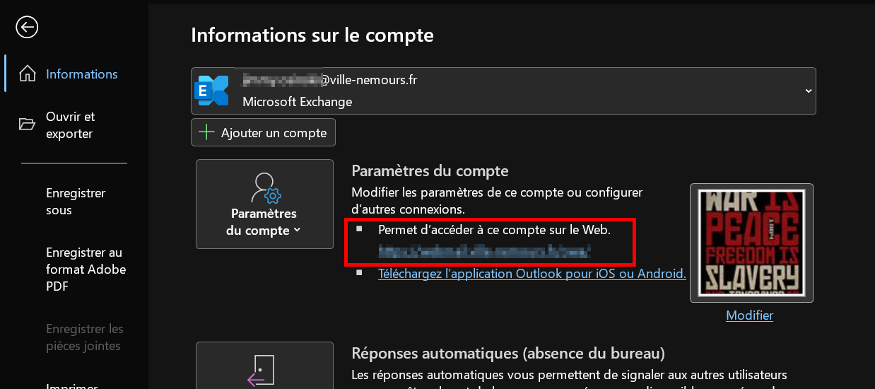 dans Outlook, cliquez en haut à gauche dans le menu sur Fichier