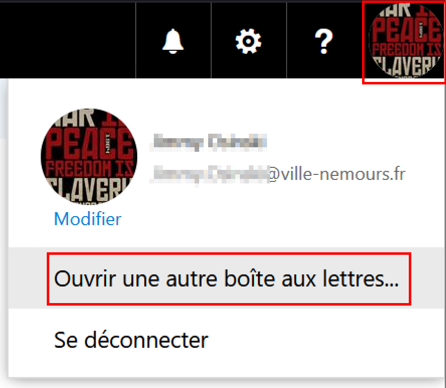 aller en haut à droit sur votre nom pour afficher le menu et cliquer sur "Ouvrir une autre boite aux lettres..."