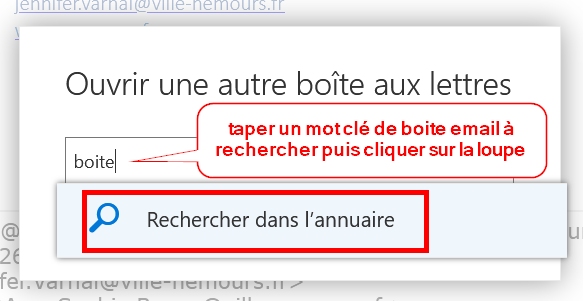 taper l'adresse et cliquer sur "Rechercher dans les contacts et l'annuaire"