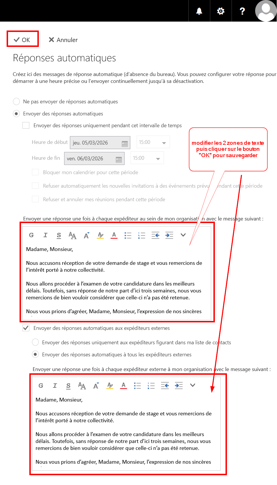 modifiez les zones nécessaires puis cliquer sur le bouton "enregistrer"
